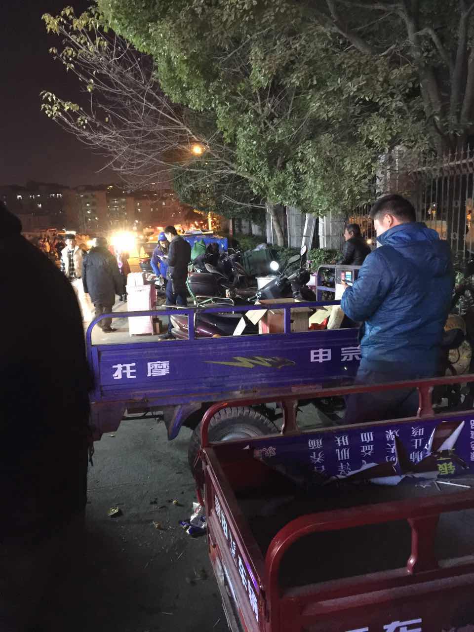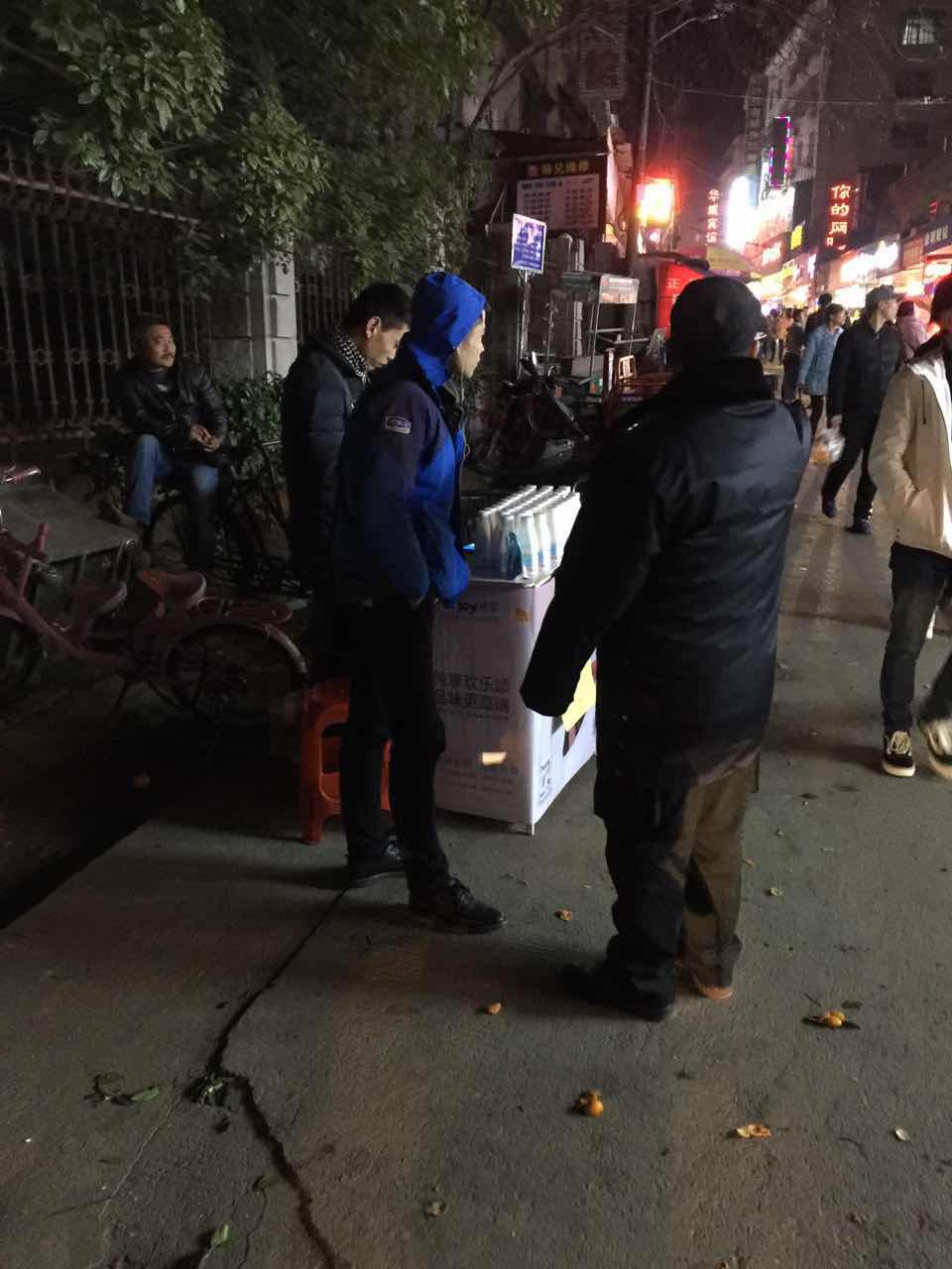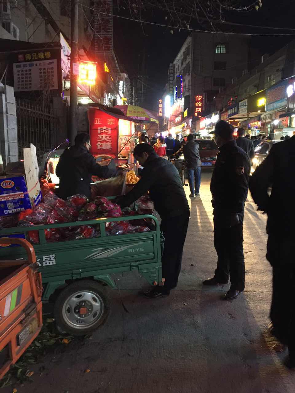 2017年12月24日晚,驻校中航物业有限公司为了确保校园秩序和师生平安,组织安保人员及时清理和取缔学校围墙周边非法摊点。