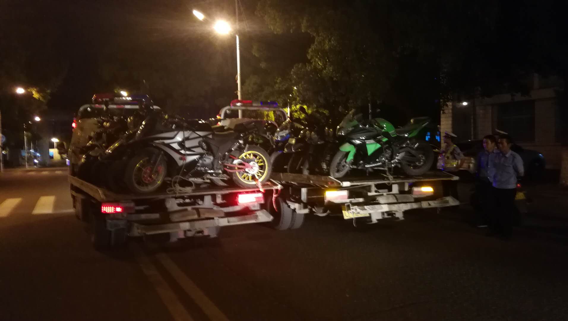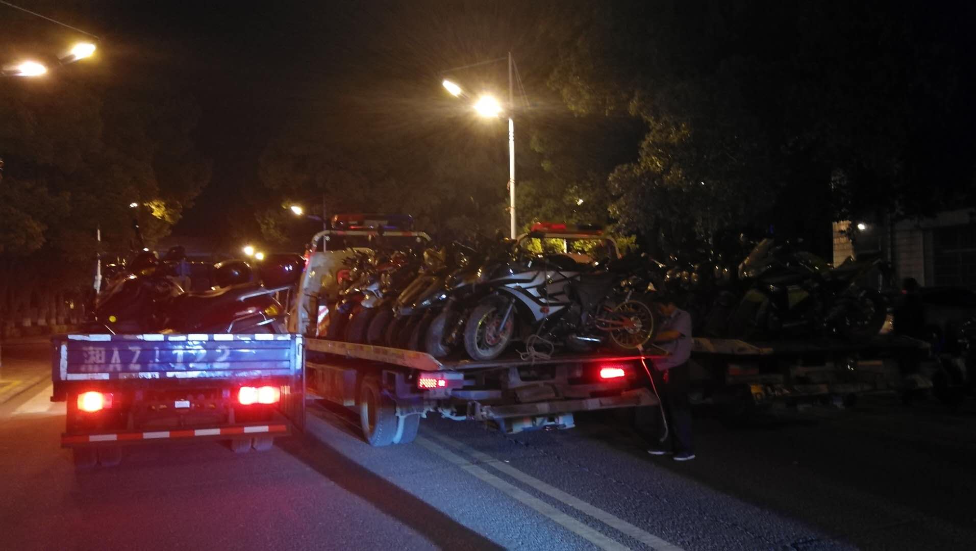 2018年5月3日19时至21时,保卫处在岳阳市交警部门、学工部民兵连、中航物业有限公司的大力配合下,针对校园摩托车泛滥,噪音大,危害学生安全和教学秩序的情况,展开了一次大型校园摩托车专项整治行动。行动中收缴无牌无证、排量大、高噪音摩托车33台。有效改善了校园安全环境和交通秩序。