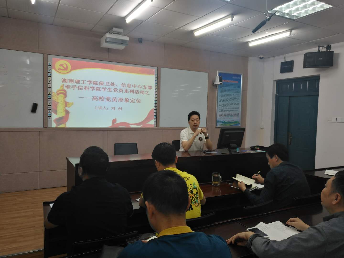 2018年5月22日下午3时,保卫处全体党员在支部书记郭青同志的带领下,牵手我校信息科学学院学生党员在学校逸夫楼517教室进行党的理论学习,我校信息中心全体党员也参加了这次活动。