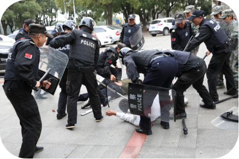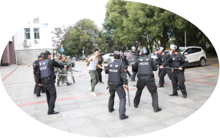 防暴事件演练流程:2018年11月2日16:30左右,2名歹徒背包,形迹可疑的来到ok138cn太阳集团,首先是从希望门进入校园,保安员XXX前去询问...当时匪徒比较心虚,将背包里的砍刀拿出,对着保安队员砍去。XXX立即躲开,并且马上通过对讲机请求支援,收到呼叫的东院中队、南院中队班长马上通知中航物业项目部经理毛志凡。保安员并火速赶到现场对师生进行疏散,毛志凡迅速报告校卫科和保卫处领导,并通知巡逻人员赶到现场支援,歹徒此时像是丧失理智,见人就砍,东南院应急巡逻人员此时也已经赶到,学生民兵连应急分队也迅速赶到,在保卫处、学工部相关负责人指挥下,反恐防暴应急队伍摆出了防御队形,严严实实的把歹徒围了起来。歹徒拿着砍刀对着盾牌一顿乱砍准备冲出围堵,经过几次尝试无效后,被保安队员、学生民兵连应急分队用腰叉等器械制服,歹徒被保安人员和民兵连队员控制在地上。医护人员对现场队员进行检查确保没有人员受伤,演习结束,各单位集合,校领导进行点评。