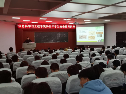 3月16日下午,保卫处处长姜剑鸣在6栋教学楼学术报告厅为信息学院开展了一堂以“勇于当担,争做建设新时代的秩序守护者”为主题的学生安全纪律教育讲座。讲座由学院党委副书记徐丹主持,王勤、李亦波等老师出席,全体学生干部参加。