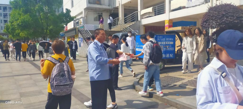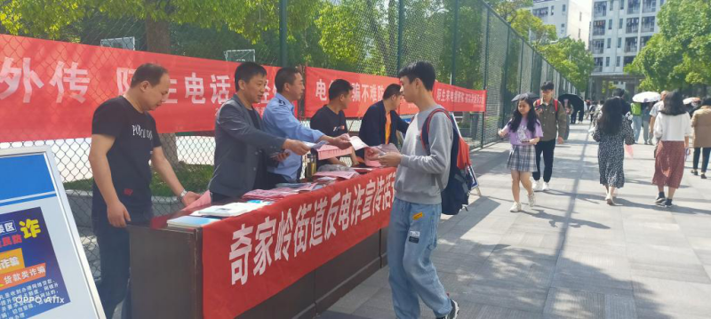 为有效遏制校园电信诈骗案件发案态势,切实增强学校师生辨别、抵制各类电信诈骗手段的能力。4月30日上午,保卫处联合岳阳楼区公安分局、奇家岭派出所、奇家岭街道办事处等相关部门在校园醒目位置挂上反诈骗横幅,在宿舍区、教学楼、食堂等学生聚集区张贴了反诈专线的宣传海报,在学生流动性大的学生宿舍一号园区和二号园区门口发放宣传资料和宣传手册,积极营造浓厚的防电信诈骗宣传氛围。
