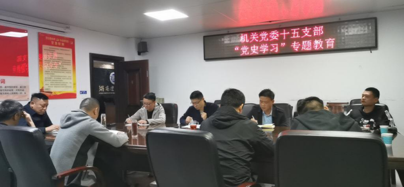 4月28日下午,保卫处党支部在综合楼124会议室举行“学史增信”第二次专题学习教育活动。活动由党支部书记姜剑鸣主讲,支部委员谭良机主持。保卫处全体党员参会。