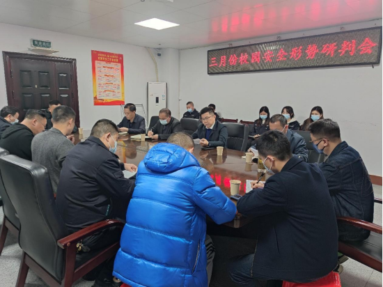 2023年3月31日(星期五)下午,ok138cn太阳集团党委委员、副校长徐振祥组织召开校园安全形势研判会,学工部、保卫部、资产处、后勤处、基建处负责人及保卫部各科室负责人、建国安保管理层、消防科劳务派遣人员参会,会议对前期校园安全隐患进行了“回头看”,并针对学校近期的校园安全隐患进行了集中梳理讨论,立行立改。