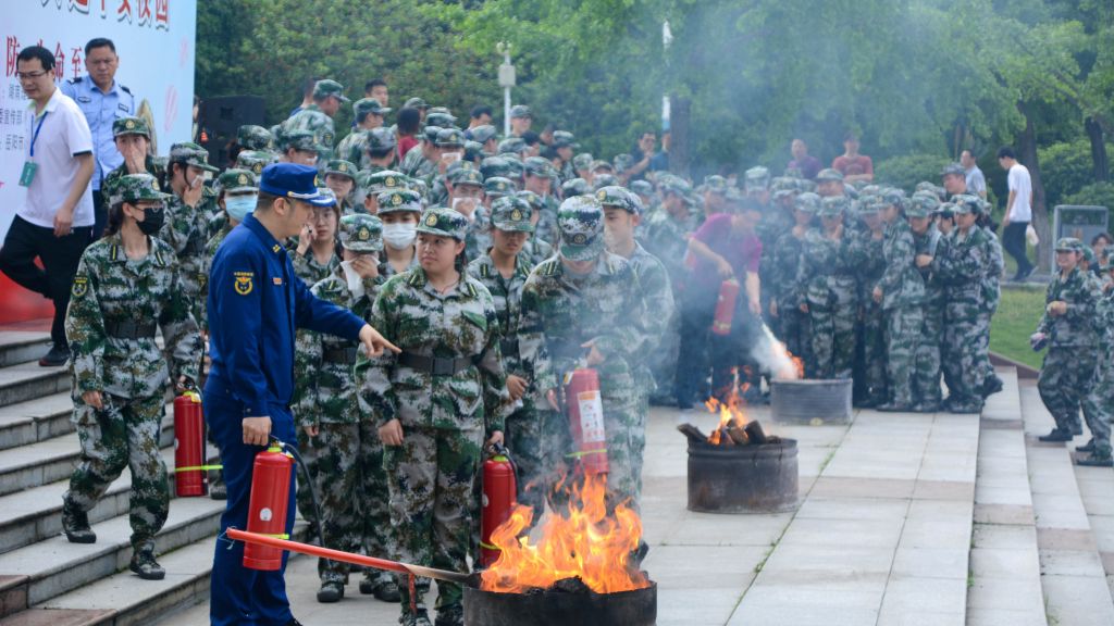 岳阳市消防应急救援支队负责人邀请同学现场体验灭火器的使用