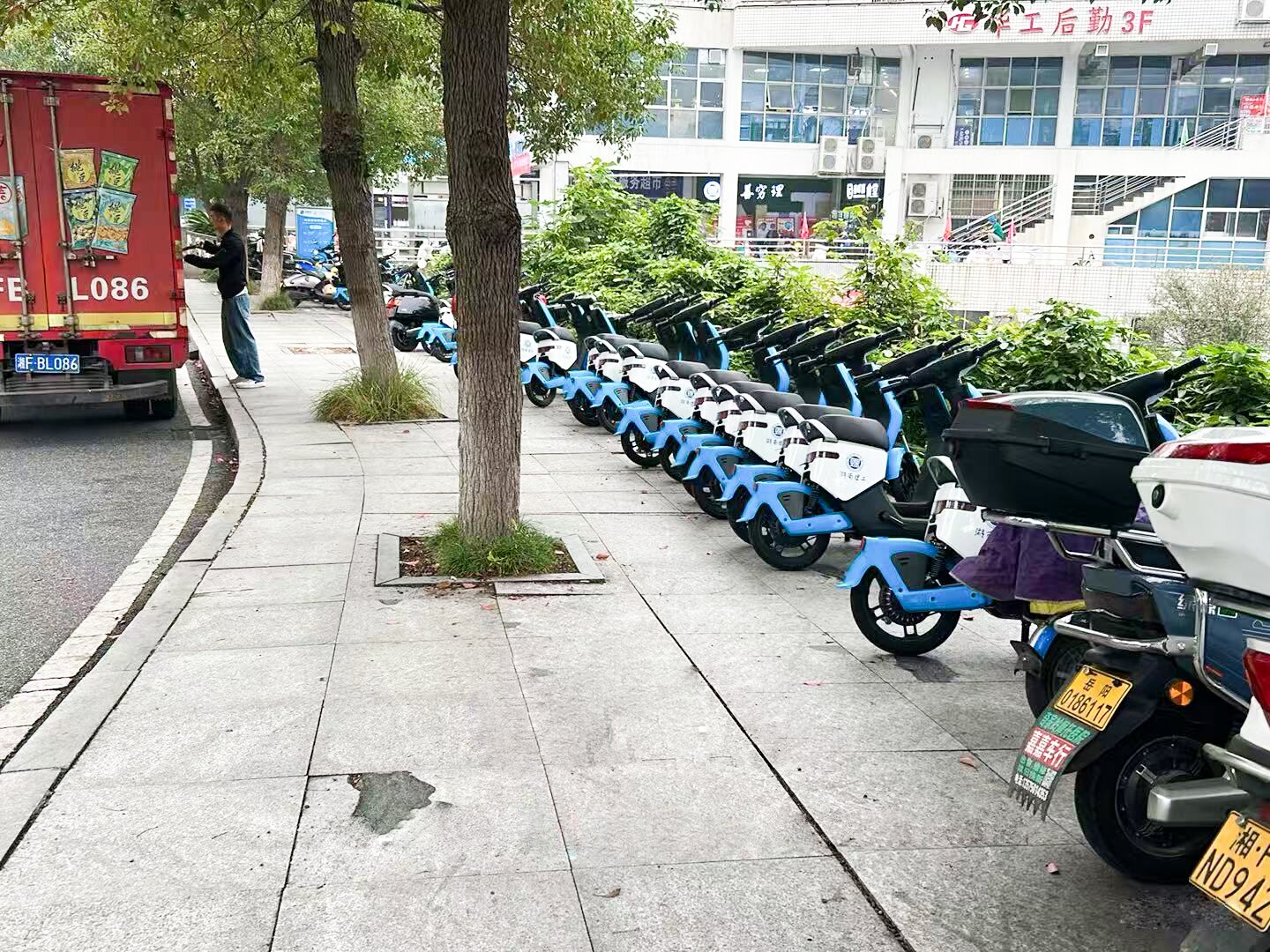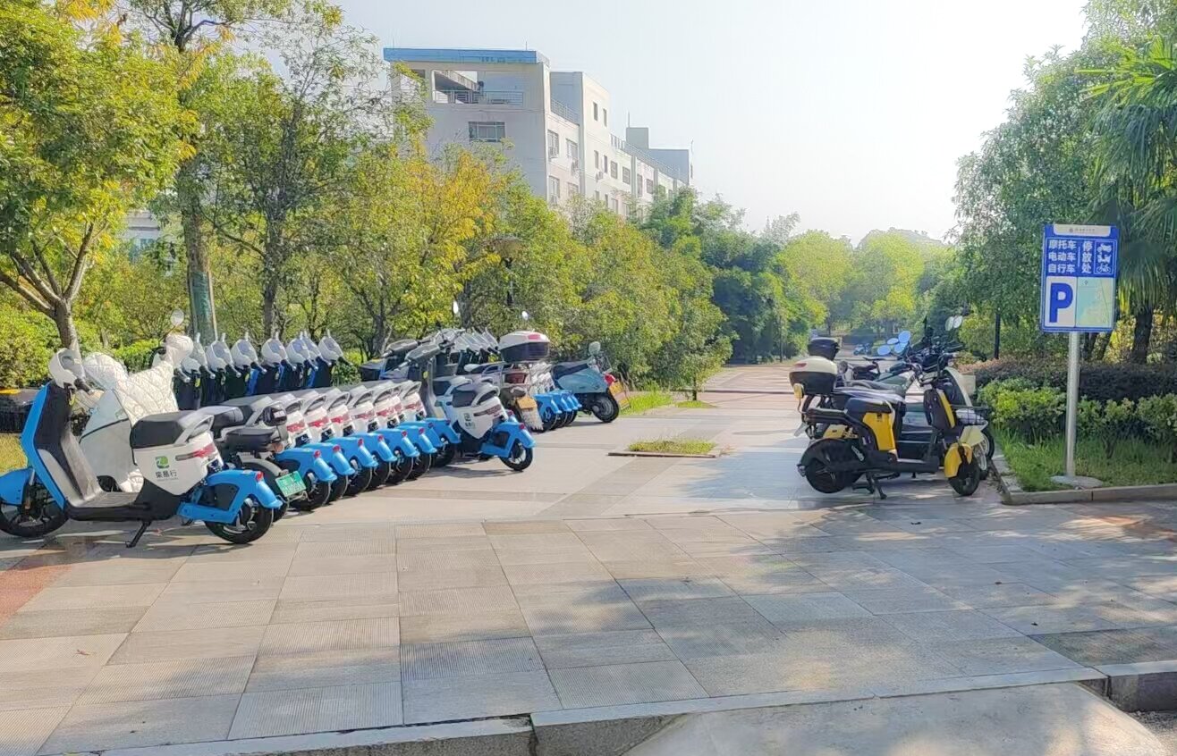 食堂周边电动车整齐有序停放