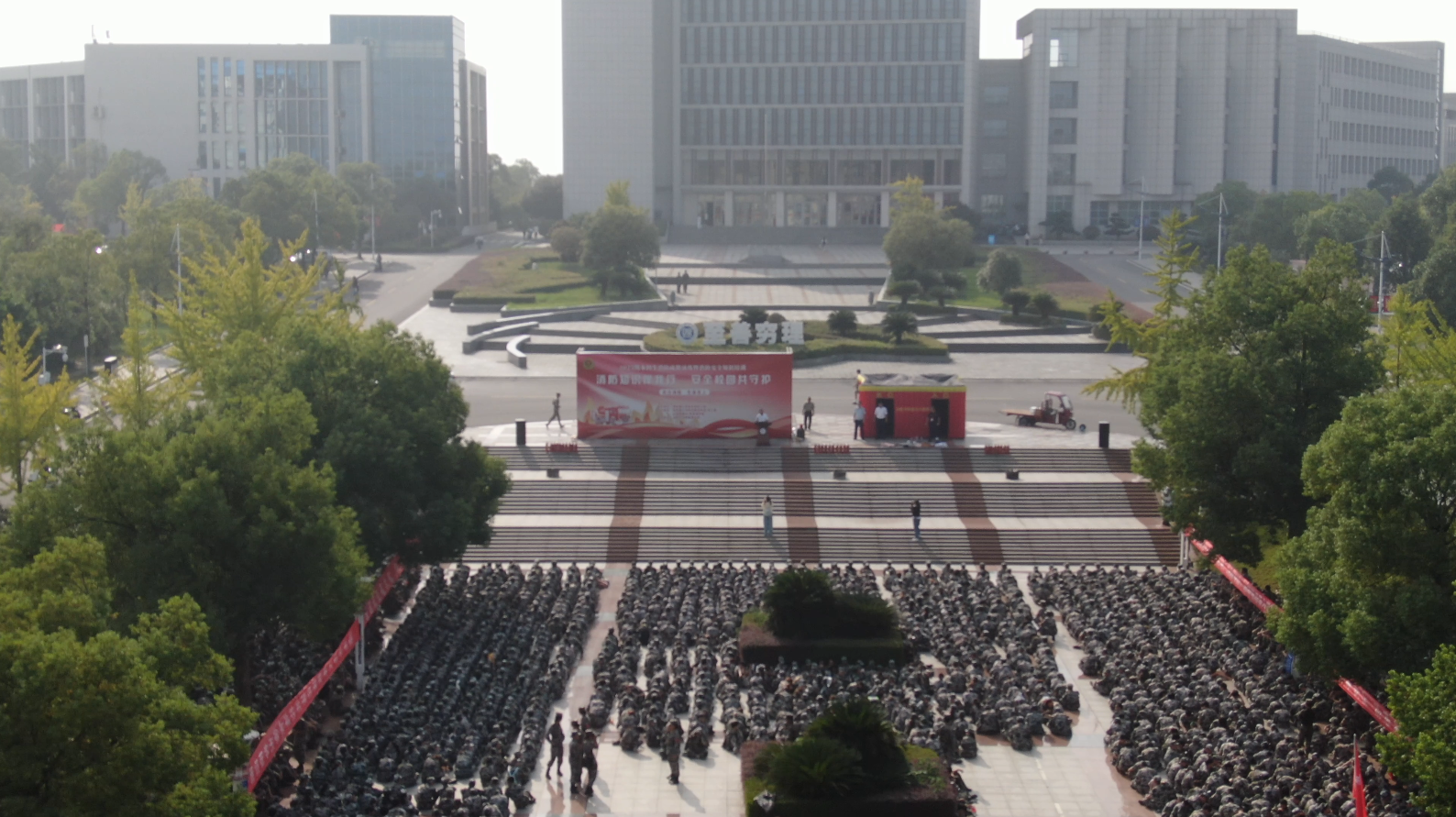 校园网讯 9月28日下午,学校在学生宿舍一号园区举行了2025年度消防演练活动。学校党委委员、副校长徐振祥,学校宣传部、学工部、保卫部、后勤基建处、岳阳市消防救援支队、驻校民警及2025级新生4000多人参与活动。