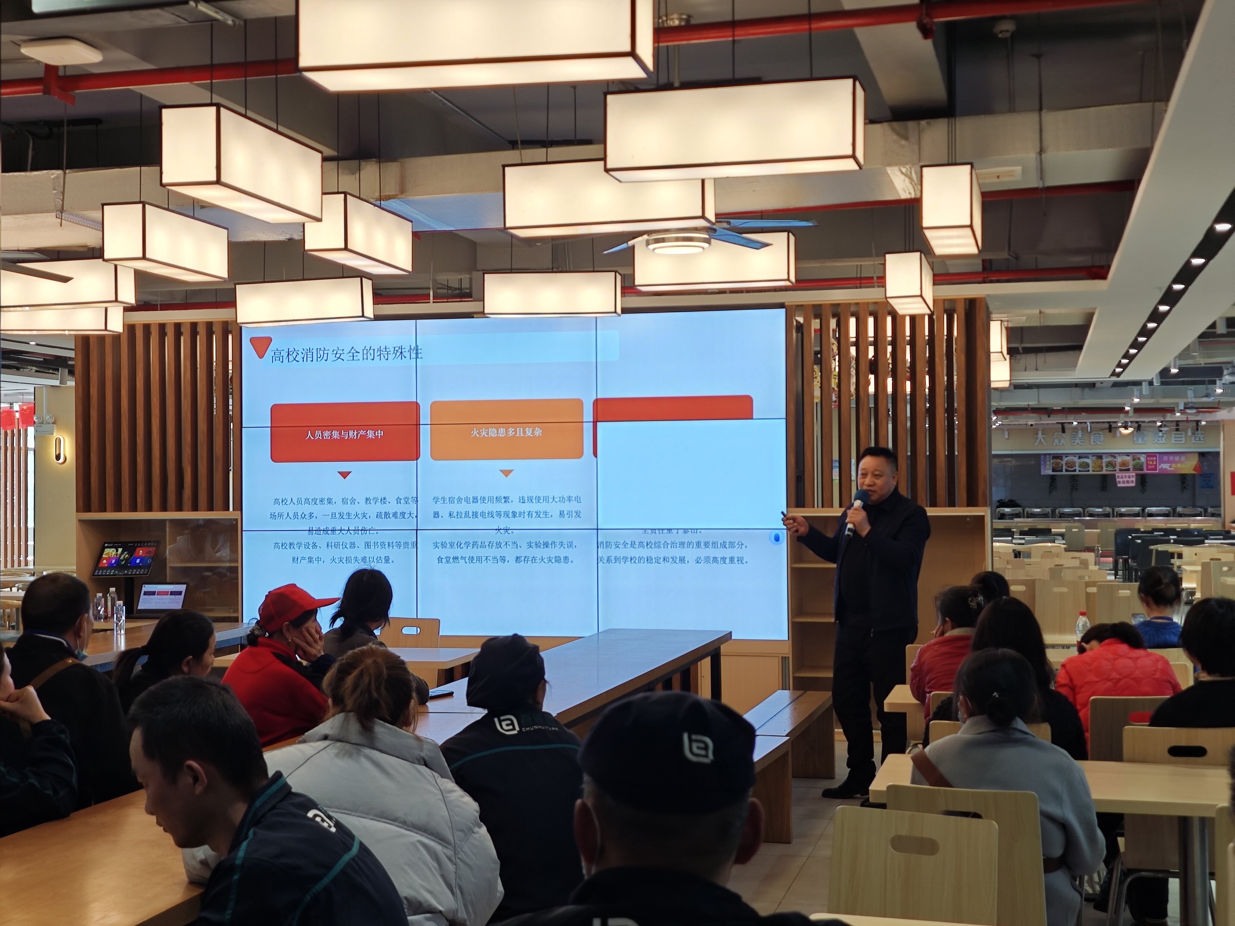 保卫部、资产处、后勤基建处以及食堂和商业门店全体工作人员参加培训活动。